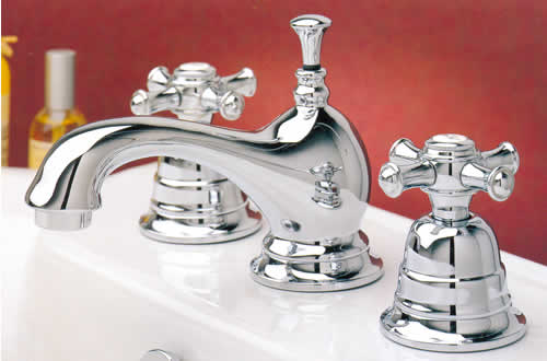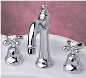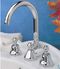 Fantastica batteria lavabo 3 fori canna alta antic